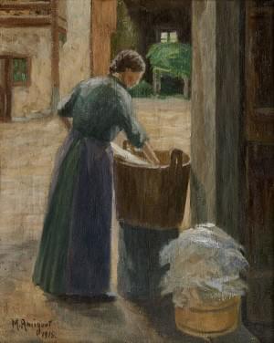 Lessiveuse, huile sur toile, signée et datée 1916, 46x38 cm
