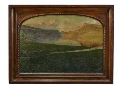 Vue du lac Brenet et de la Dent de Vaulion, huile sur toile, cad...