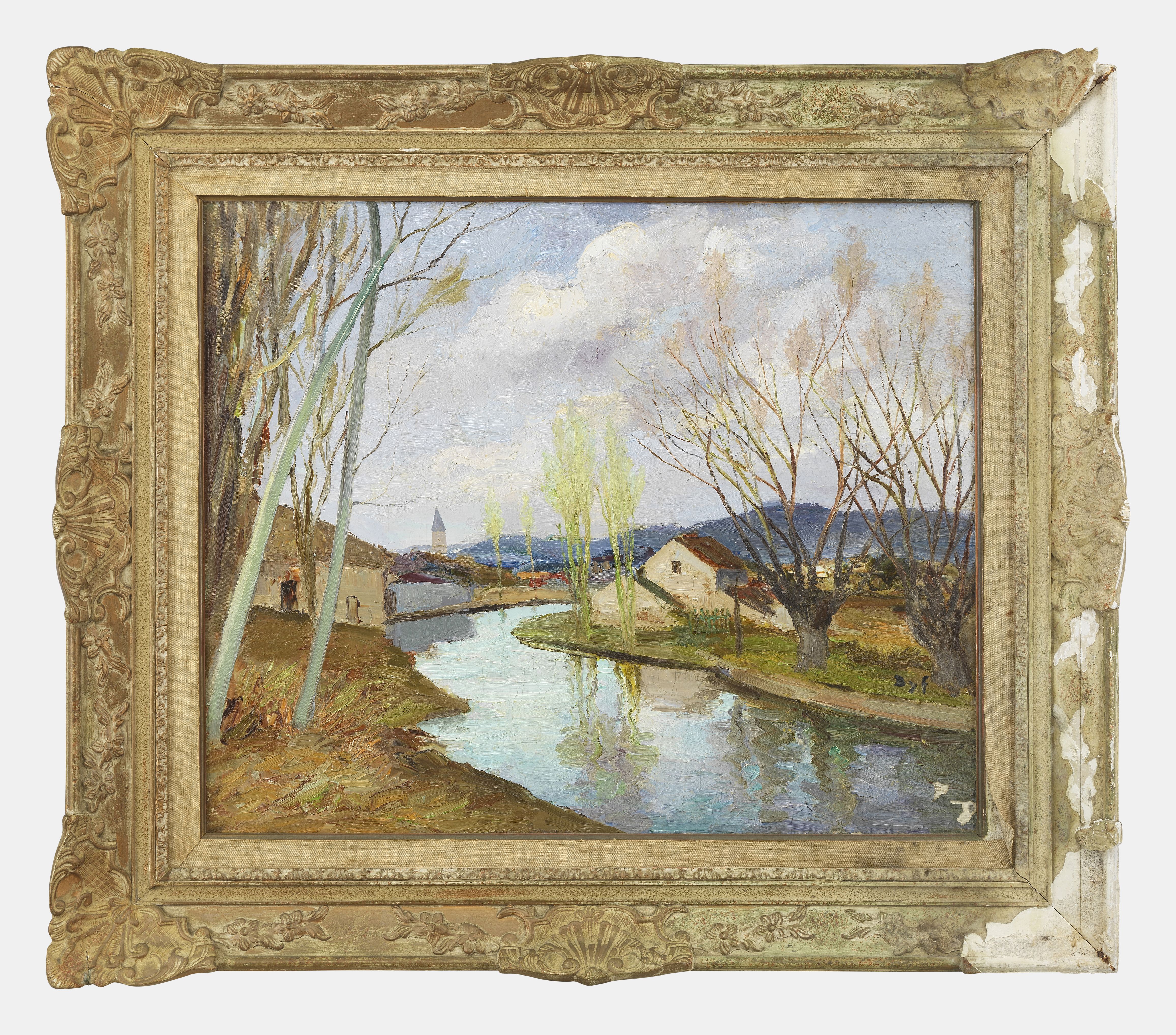 La Mauldre au début du printemps, huile sur toile, signée, 60x75 cm