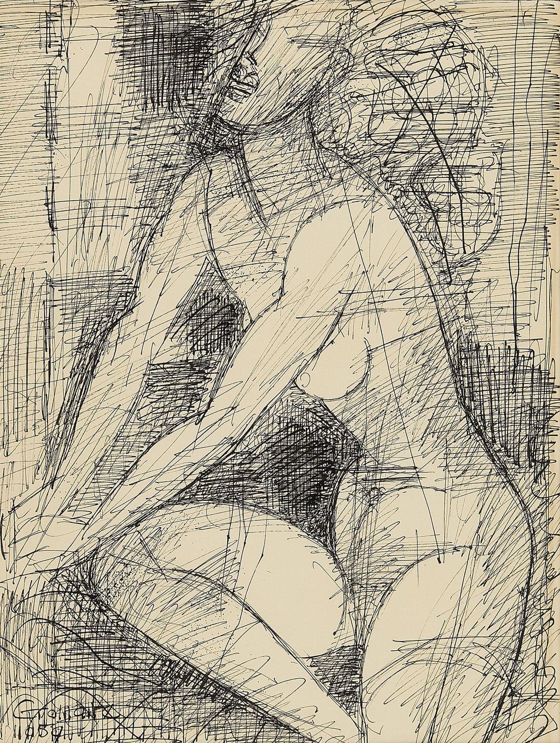 Nu féminin, encre sur papier, signée et datée 59, 31x24 cm