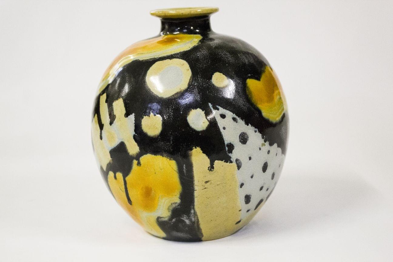 Vase décoré de motifs abstraits, céramique émaillée noir, blanc...