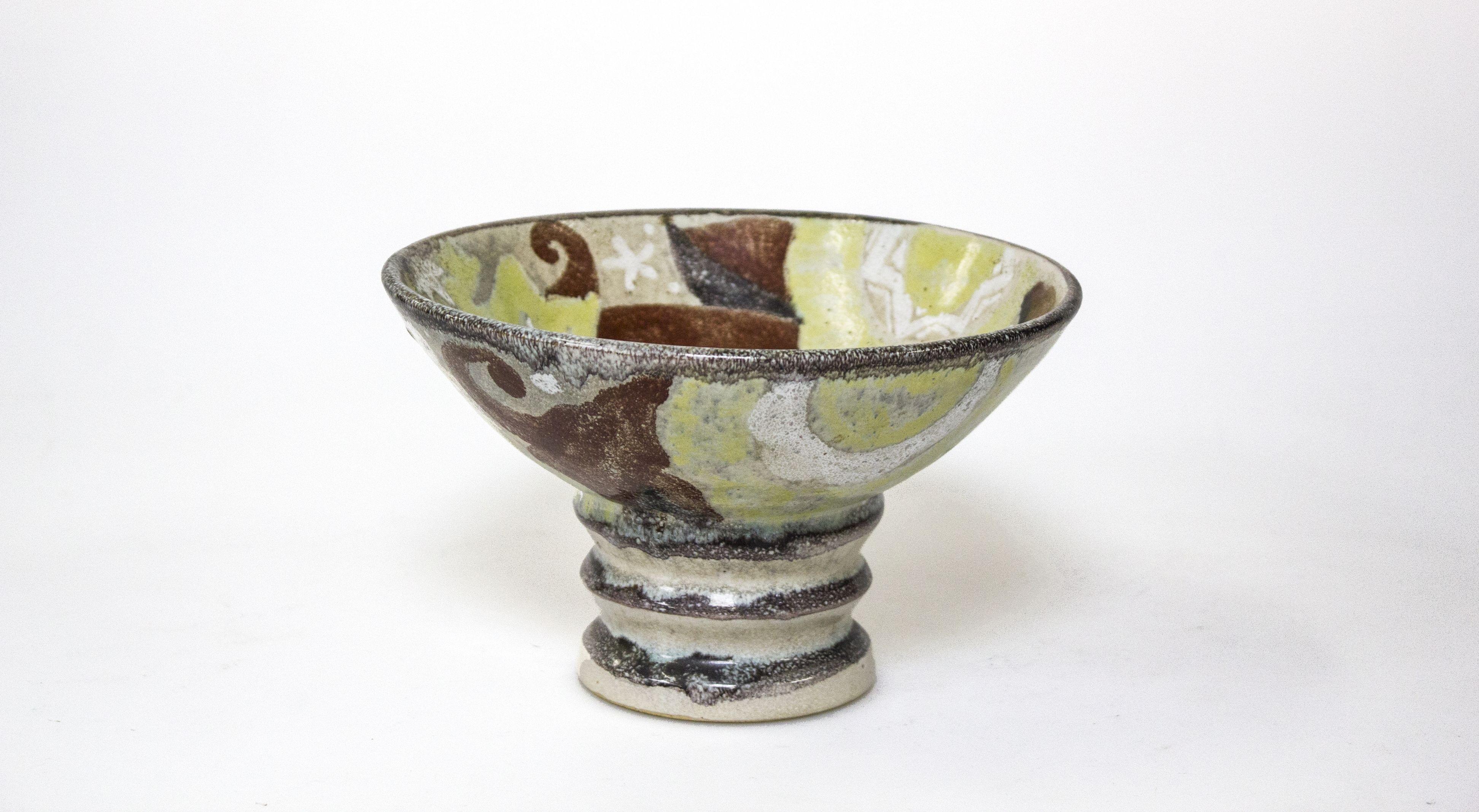 Coupe sur pied, céramique émaillée céladon, marque de la Poterie...
