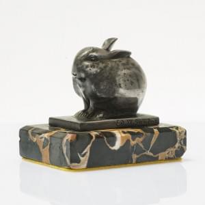 Lapin à l'oreille relevée, fonte Susse Frères, bronze et marbre...