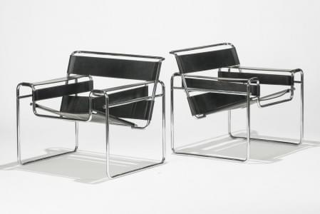 Paire de Fauteuils B 3, cuir et acier, édition Gavina