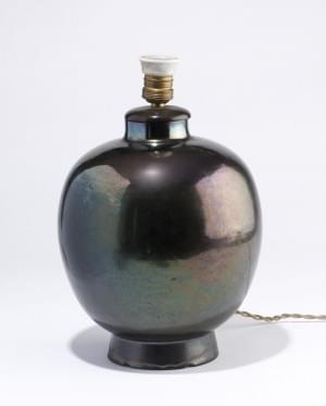 Vase balustre, abstraction argentée, céramique émaillée gris mat...
