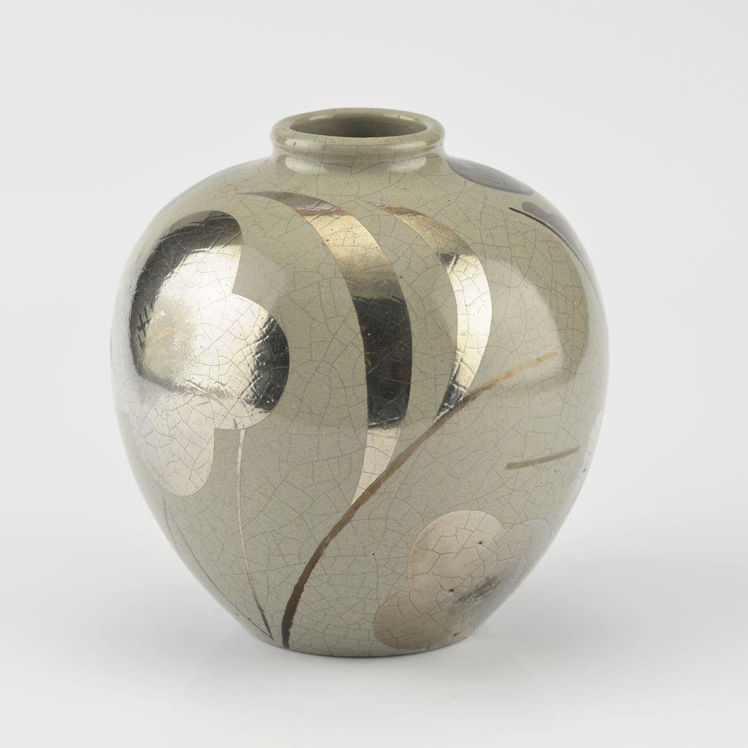Vase à épaulement, Abstraction, céramique émaillée en noir, viol...