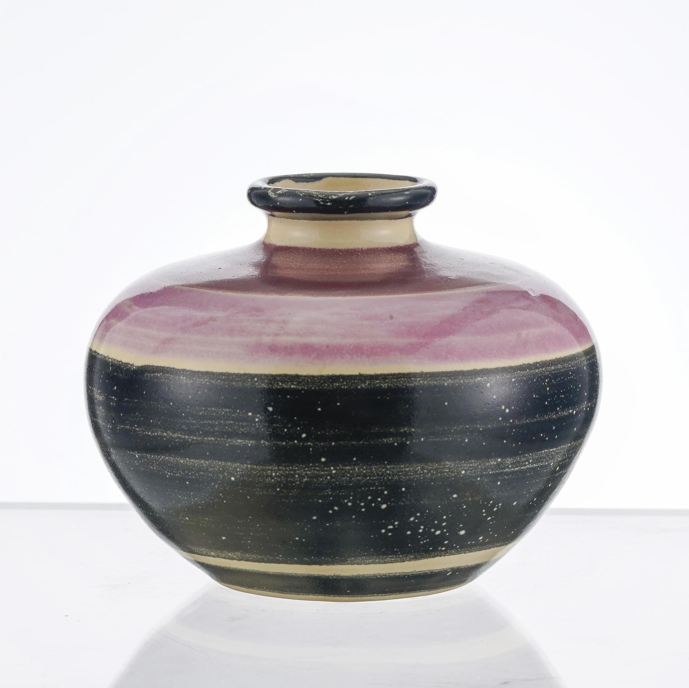 Vase cornet à décor de lignes, céramique émaillée noir, orange e...