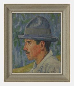 Profil d'homme barbu, huile sur toile, signée et datée 1916, 46x...