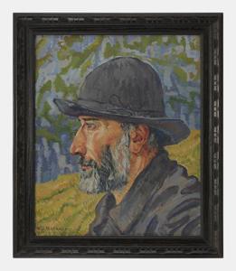 Profil d'homme à la moustache, huile sur toile, signée, 46x38 cm