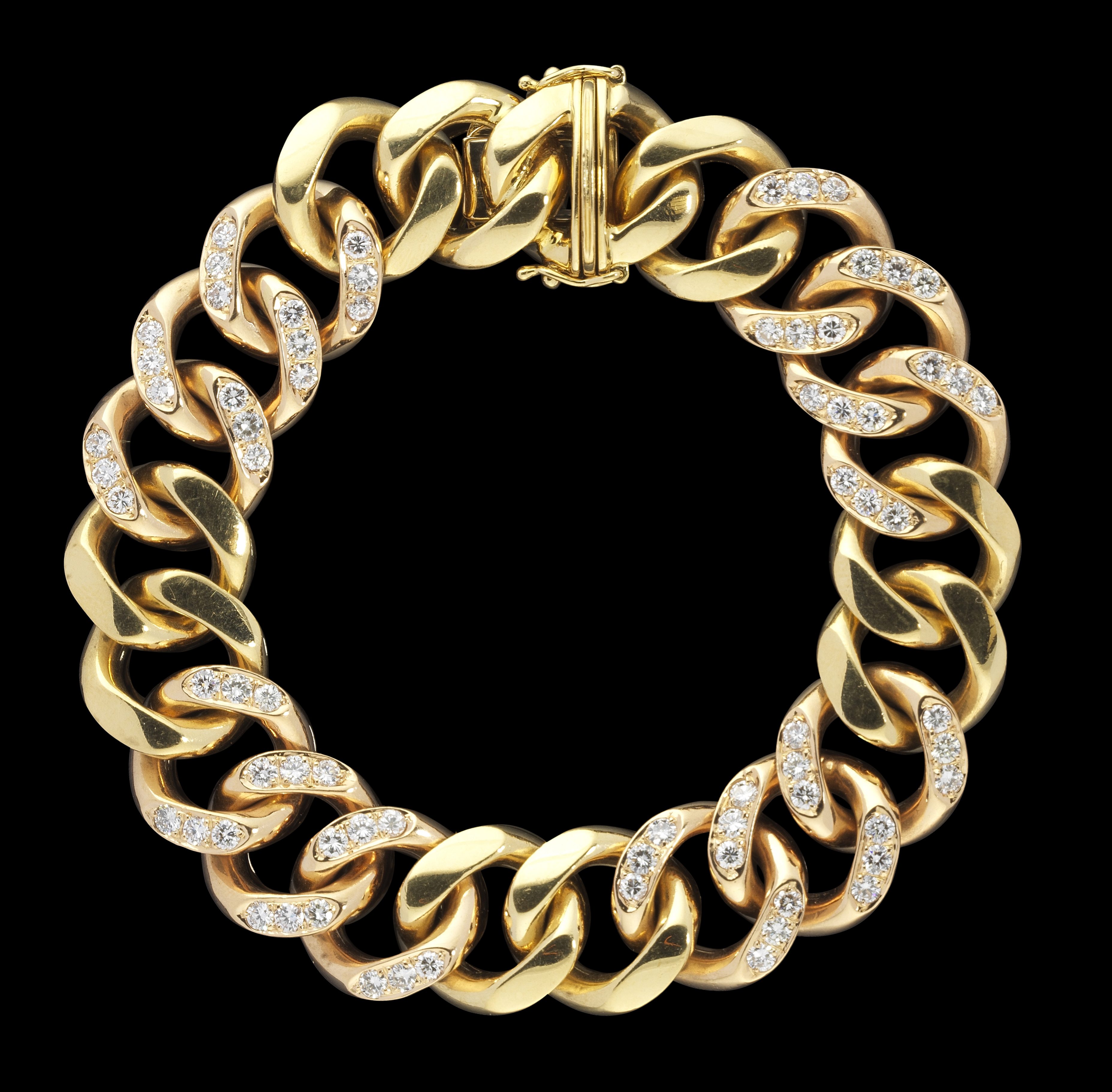 46. Bracelet à maille gourmette ponctué de maillons sertis de diaman...