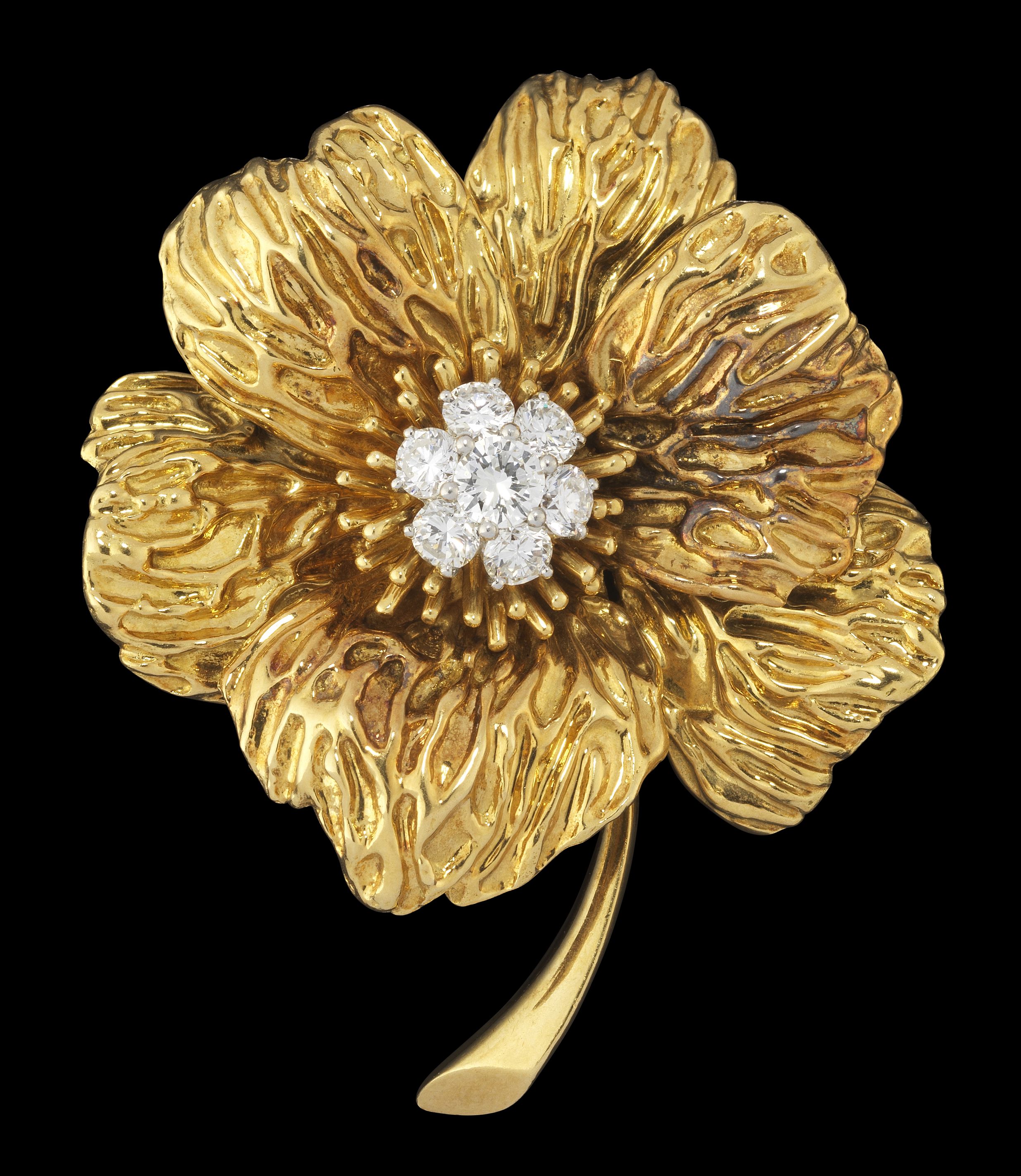50. Van Cleef & Arpels, broche fleur stylisée au cœur pavé de diaman...