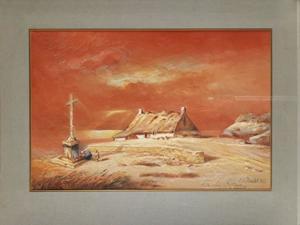Vieille ferme en Bretagne, pastel et gouache sur papier, signé e...