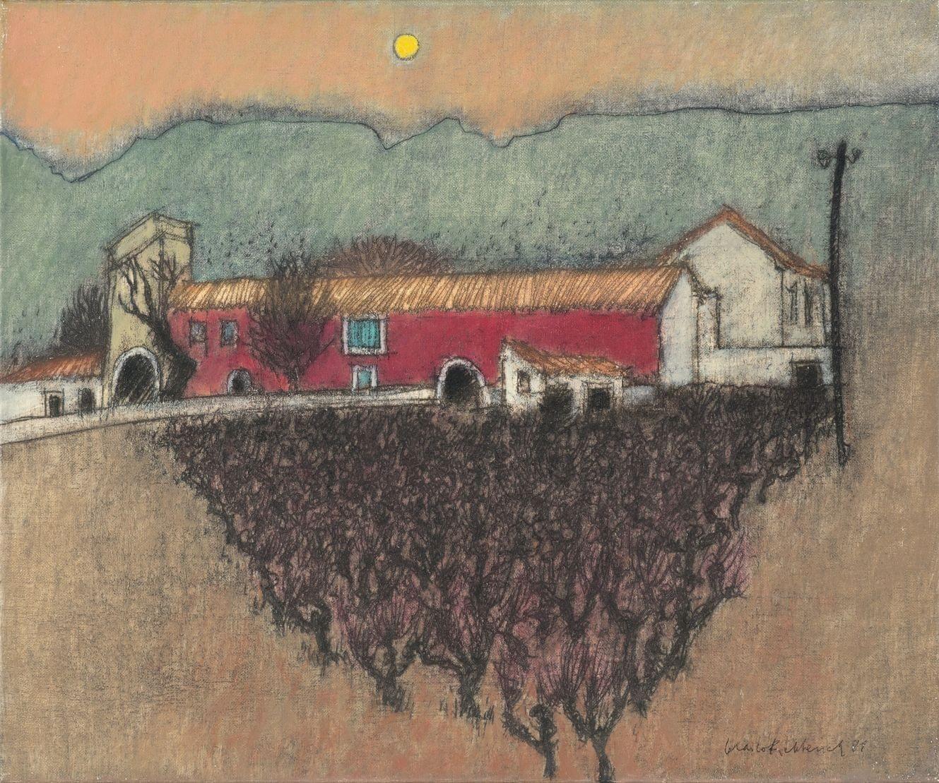 Dans les vignes, huile sur toile, signée et datée 81, 46x55 cm