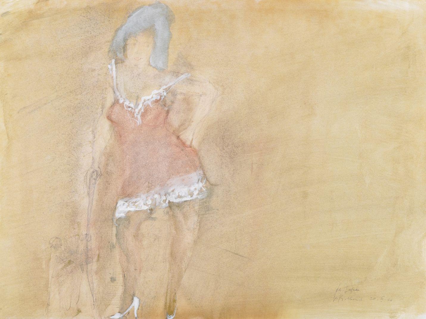 Le jupon, aquarelle, gouache et fusain sur papier, signé et daté 20.III.66, 50x66 cm