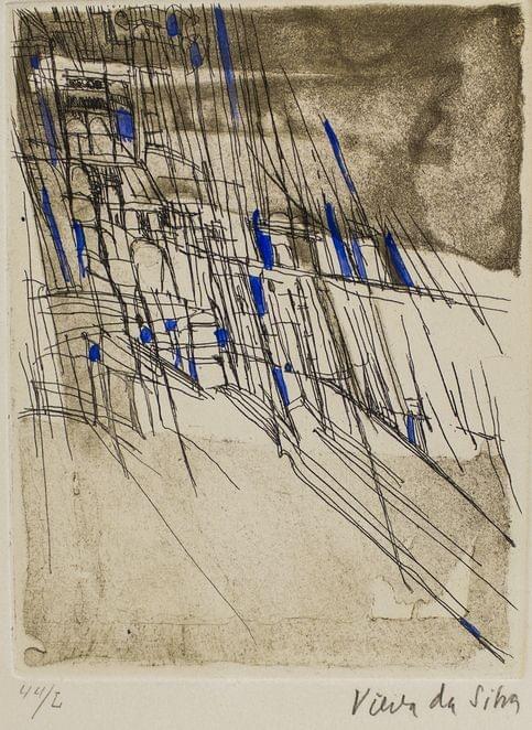 Composition reprenant l'affiche pour l’exposition L’Oeuvre gravé à la Bibliothèque Nationale, eau-forte, signée et numérotée 28/L, 15x12 cm