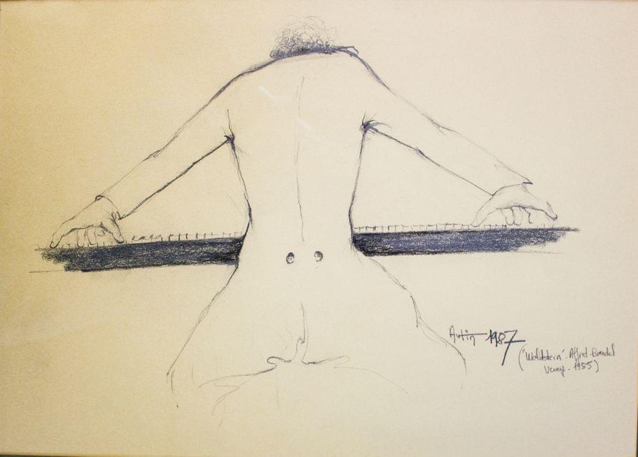 Pyramides de Giseh, gouache sur papier, signée A. Baldini, 32x49...