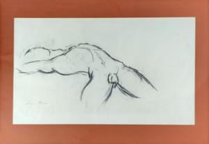 Nu masculin, fusain sur papier, signé, 34x59 cm