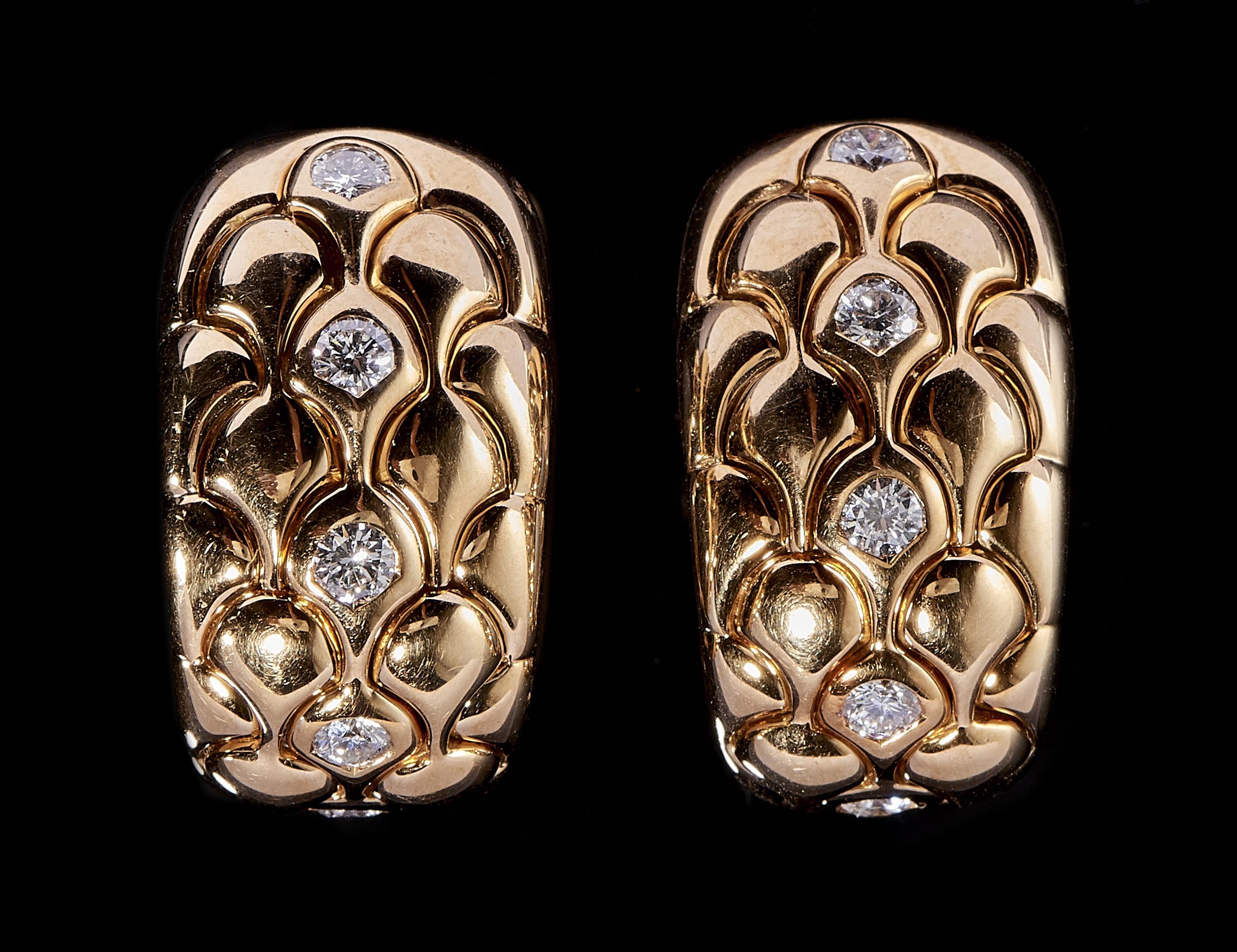 Jade vert, cabochon de saphirs et rubis, brillants, L 4,5 cm