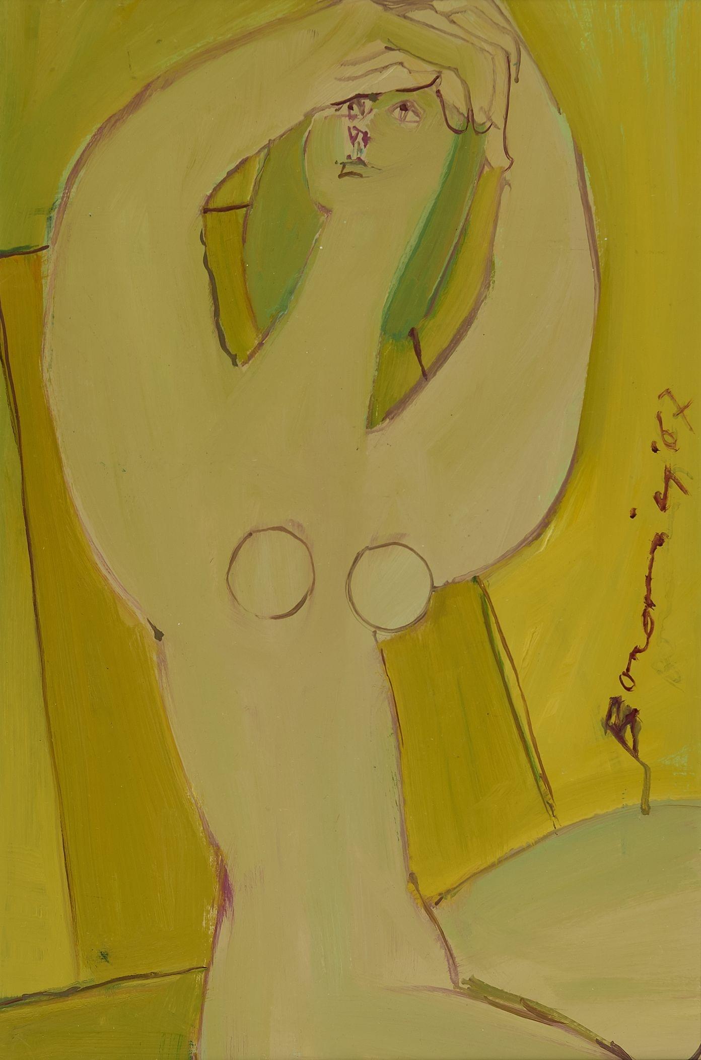 Deux nus sur fond rose, aquarelle sur papier, signée, 47x35 cm