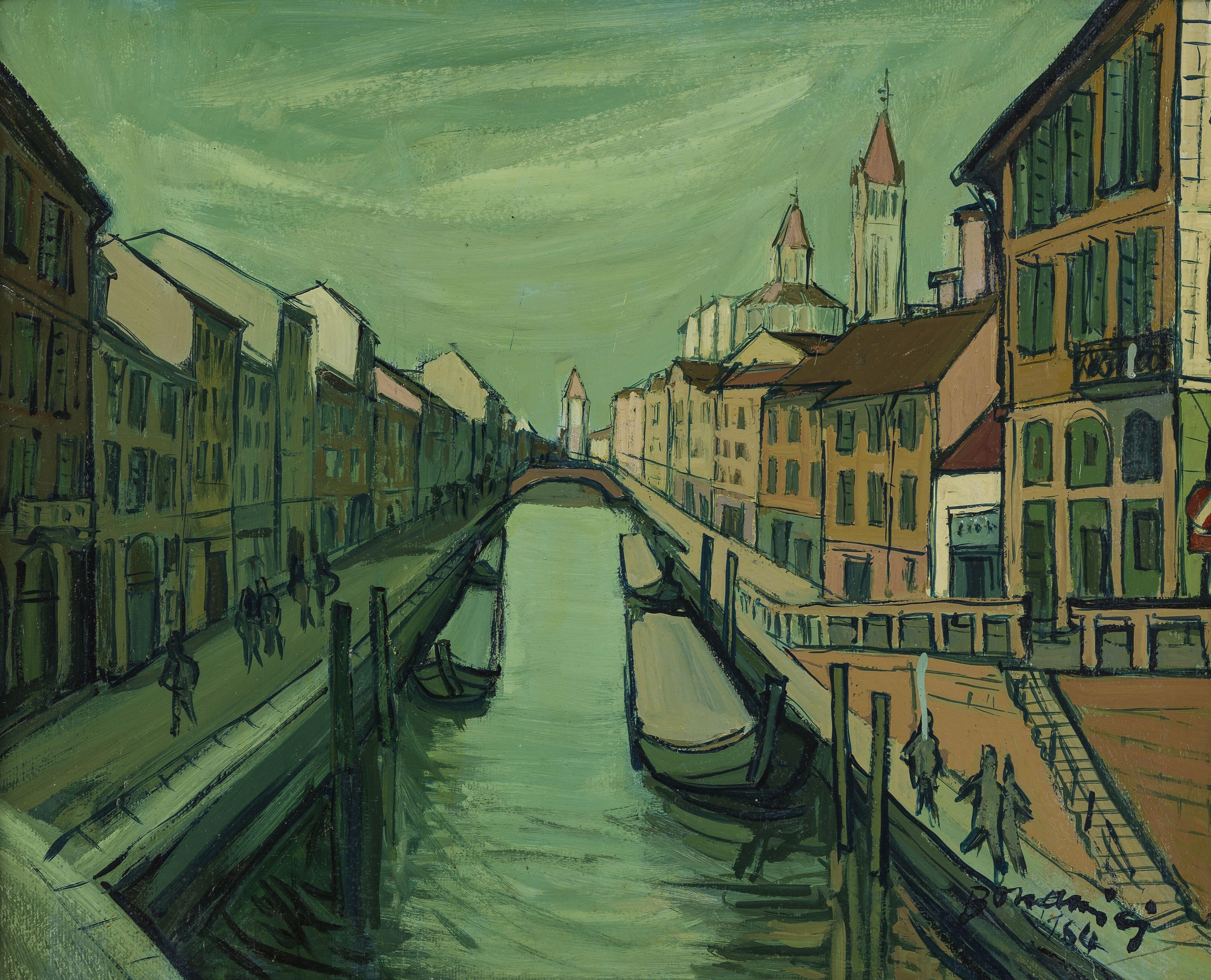 Venise, huile sur carton, signée et datée 64, 58x72 cm; au dos une autre vue