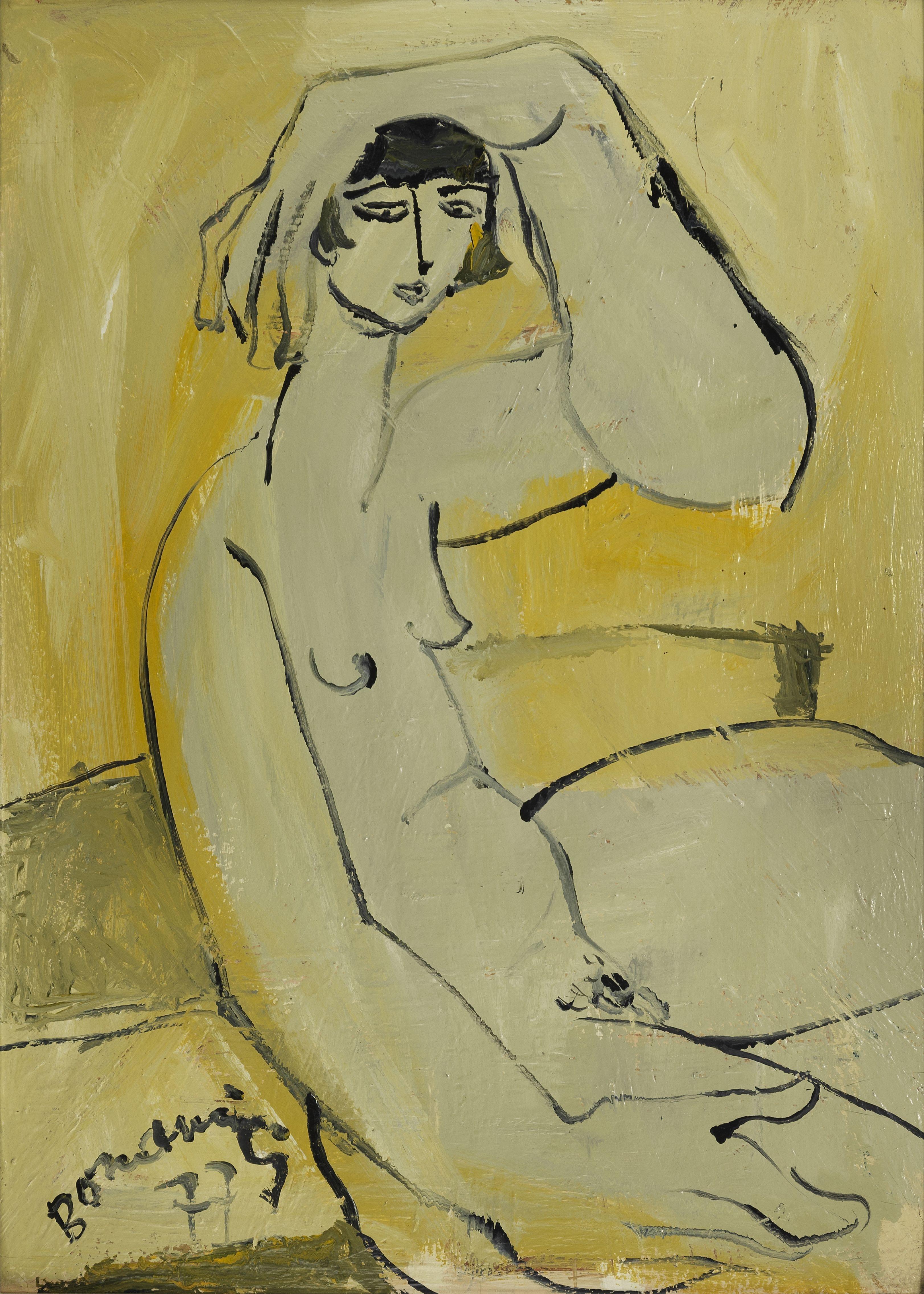 Le couple jaune sur fond noir, huile sur panneau, signée et daté...