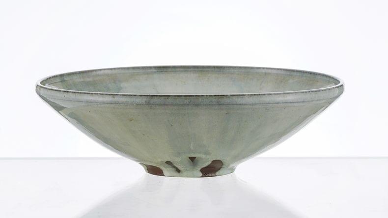 Deux bols sur talon, en grès recouvert d'un épais émail blanc à...