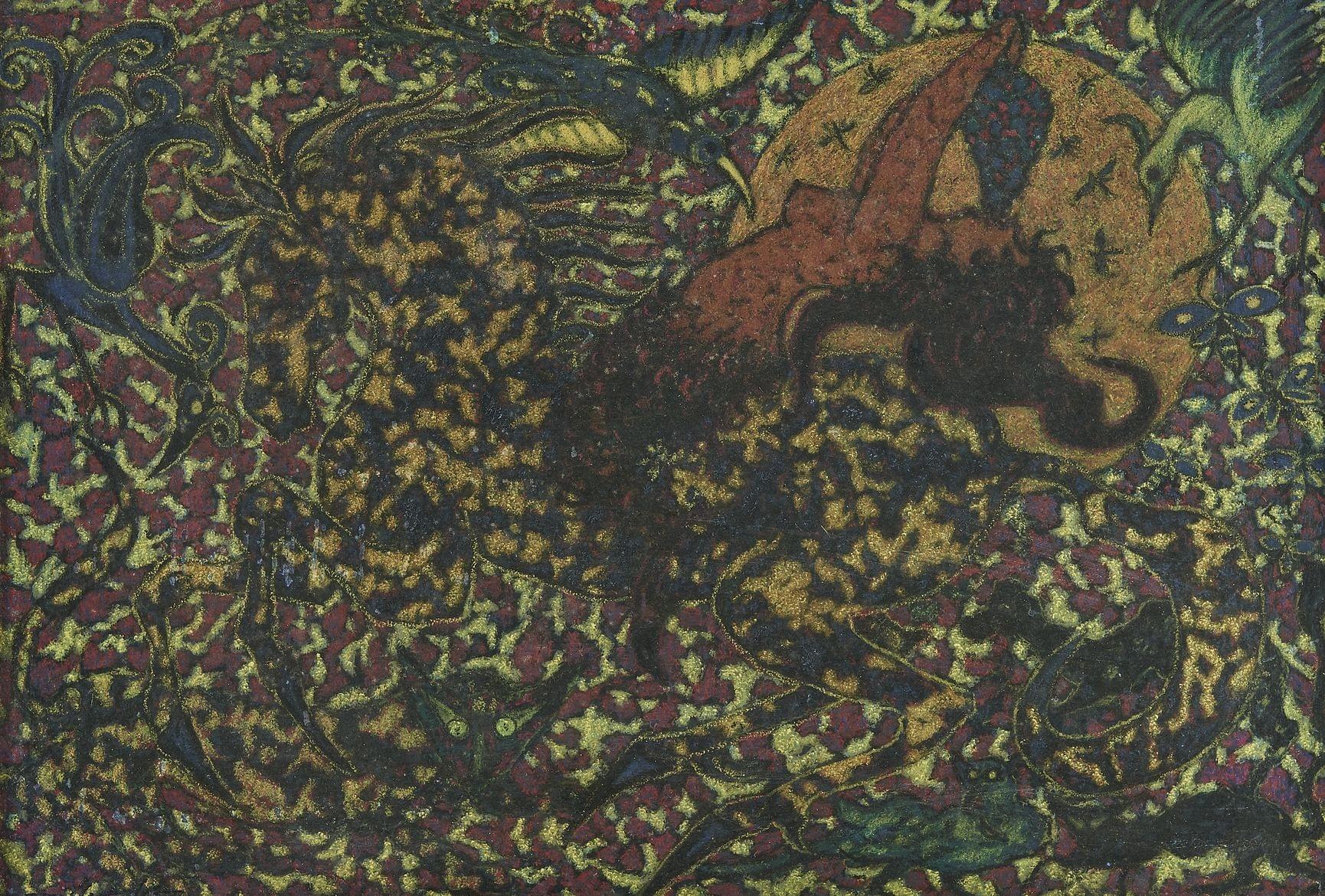 Création du monde, le cheval, huile sur pavatex, signée, période...