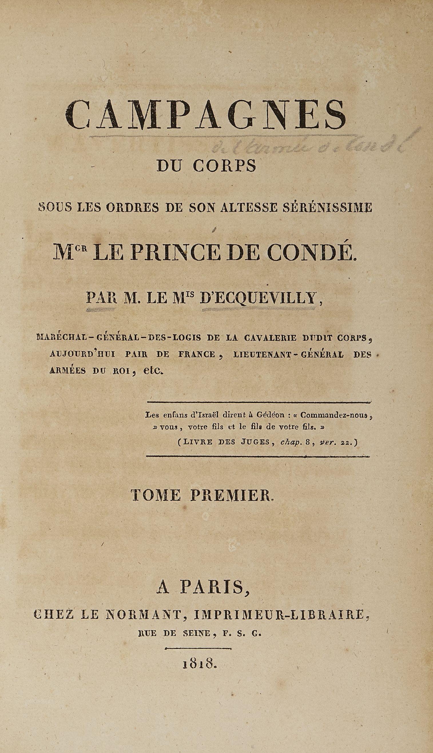 Neuchâtel, Louis Fouche-Borel, 1799, ex-libris manuscrit S.D. B...