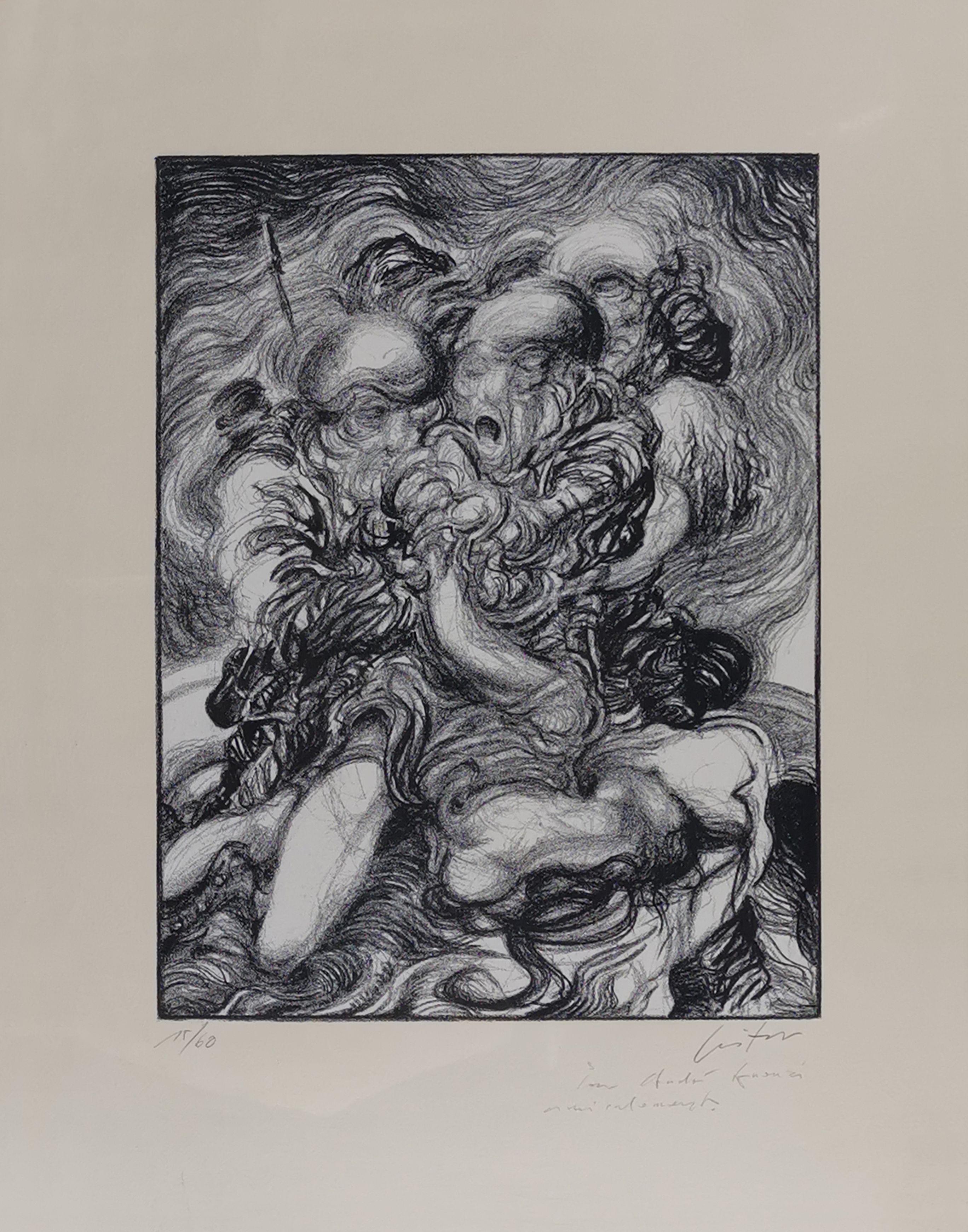Composition, lithographie, numérotée 15/60, dédicacée et signée, 65x50 cm.