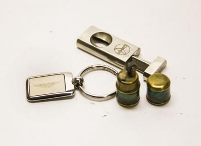 3225. Lot comprennant un porte-clef Aston Martin, un coupe-cigare Swis...