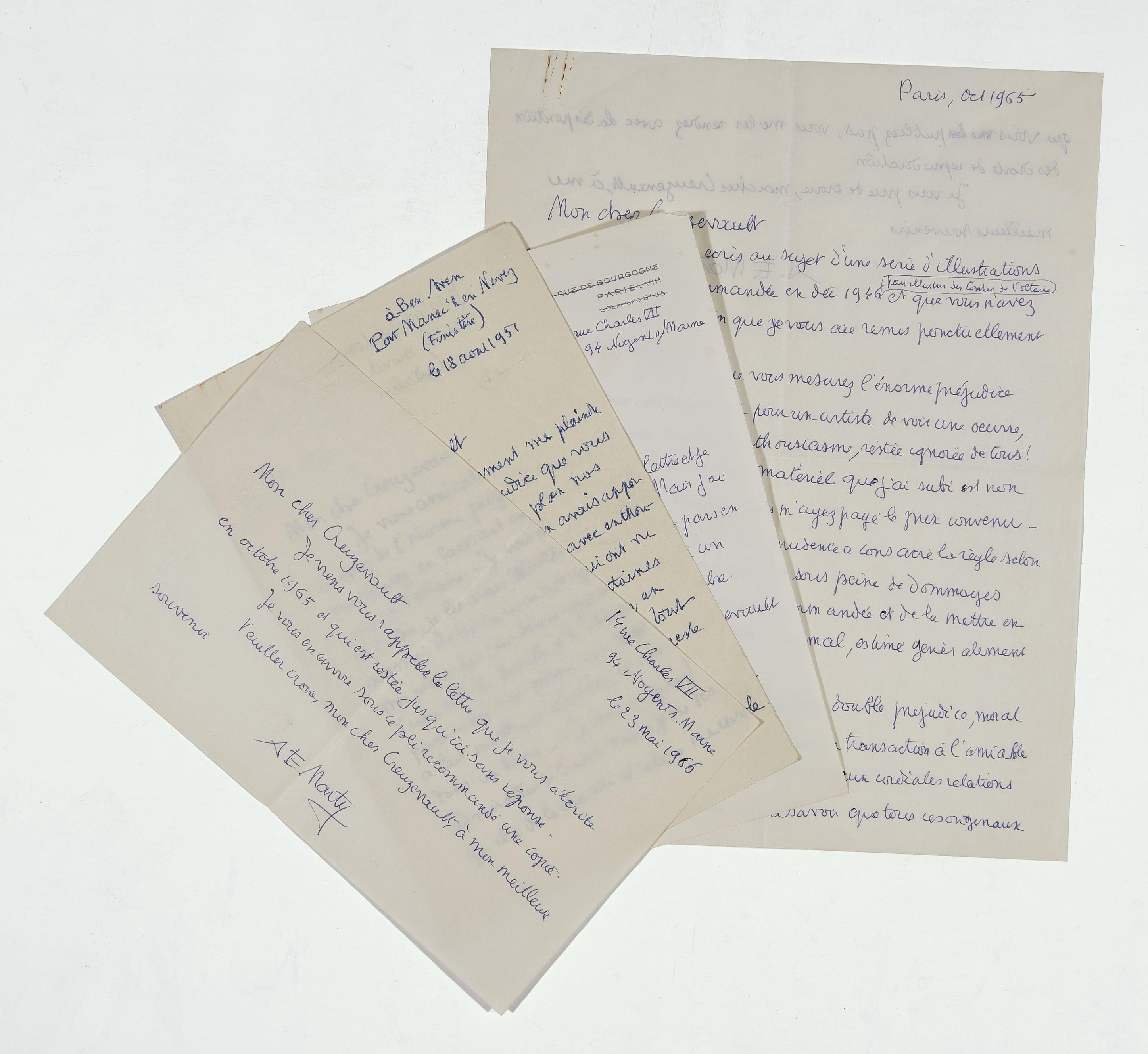 Exemplaire unique, enrichi de 4 L.A.S. adressées à l'éditeur et relieur Creuzevault.