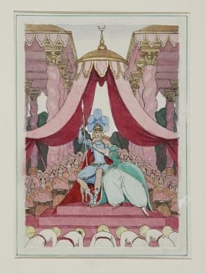 401. MARTY (André-E.): Album de 25 dessins originaux à l'aquarelle ayant servi à l'illustration du conte de Voltaire,"le monde comme il va";