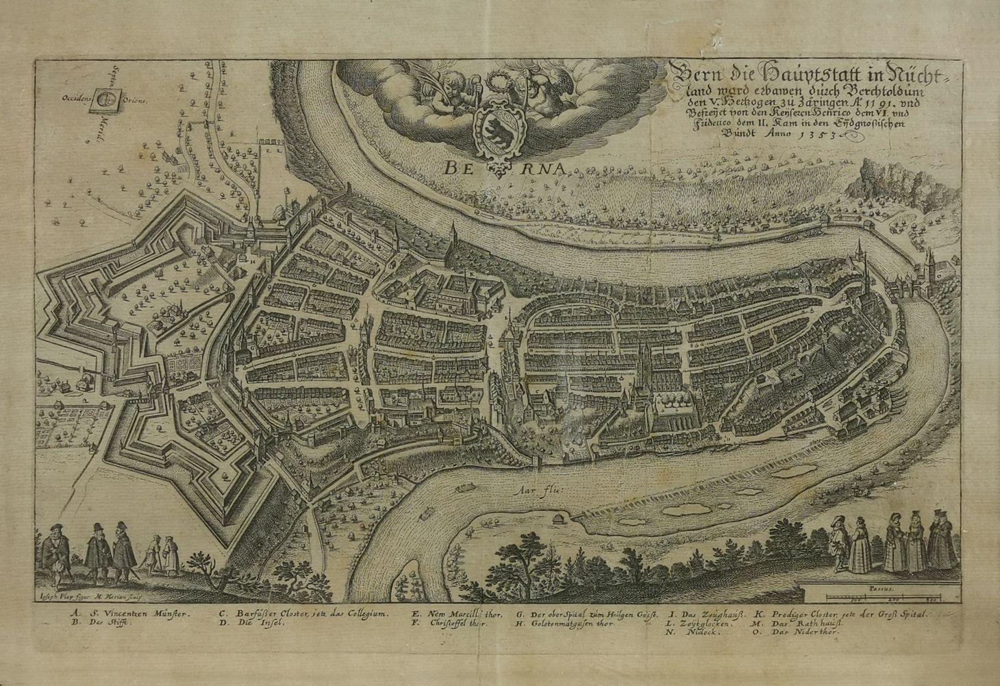 Plan de la ville de Berne, estampe, 22x35 cm