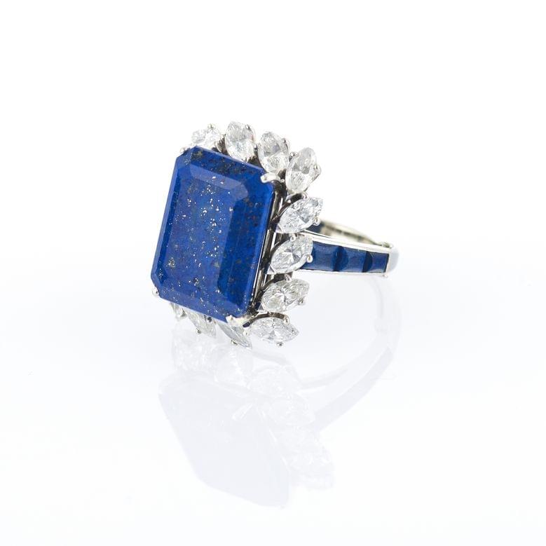 122. Mauboussin, bague sertie d'un lapis lazuli taille émeraude entouré de diamants taille navette
