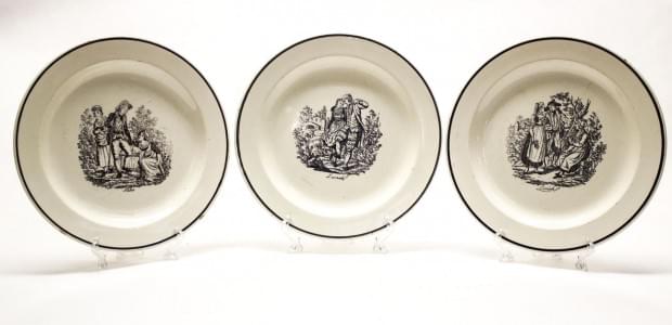 3244. Trois assiettes à décor de personnages des cantons de Zurich et...