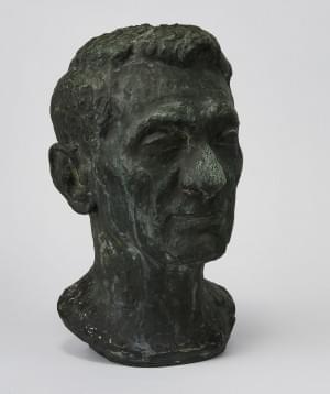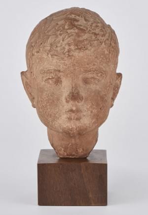 Buste d'enfant, terre cuite signée et datée 1943 sur socle en bo...