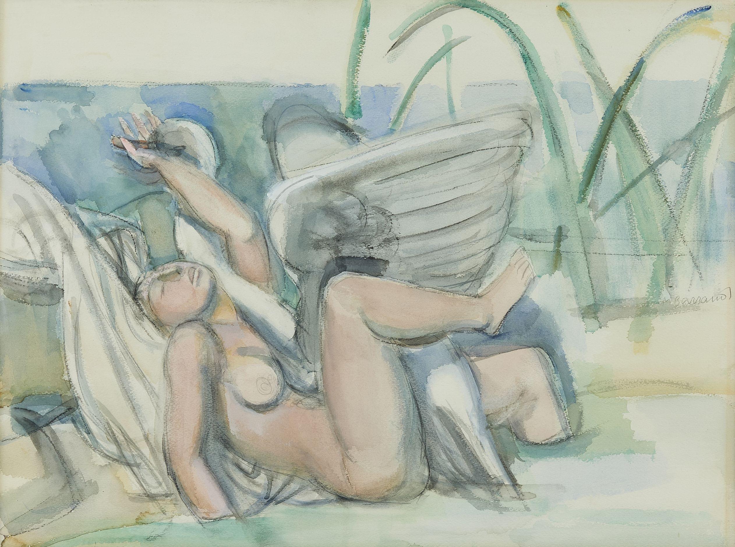 Léda et le cygne, aquarelle sur papier, 51x70 cm