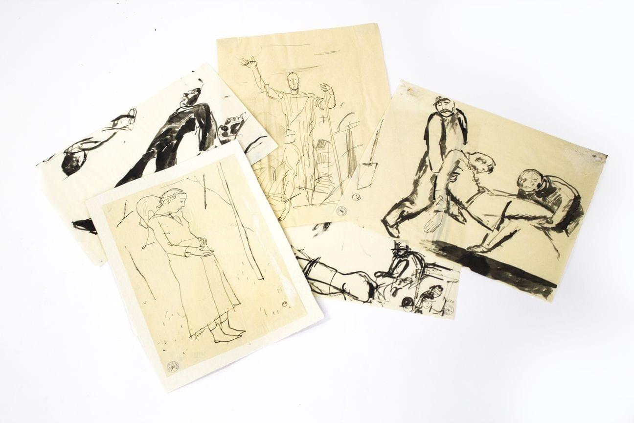 Les danseurs, plume et mine de plomb sur papier, cachet de l'ate...