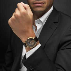 Cadran guilloché, aiguilles bleuies, chiffres arabes noirs, or 7...