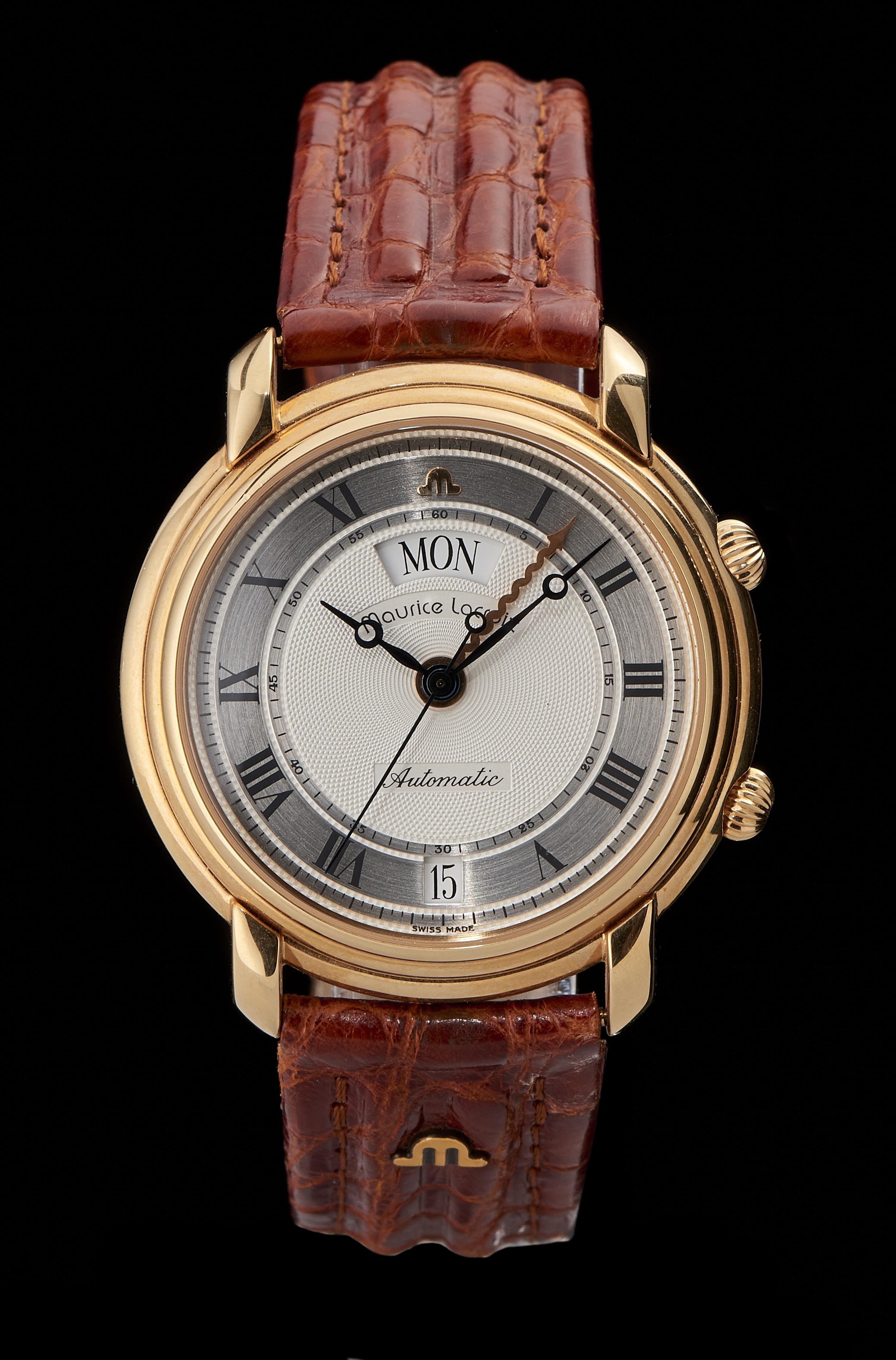 Cadran argenté, chiffres romains noirs, aiguilles bleues, jour et date à guichet à 12h et 6h, éd. limitée 535/999, réf. 45393, or 750, D 38 mm, poids brut 76 g