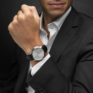 Cadran argent, aiguilles noires, or gris 750, 23x23 mm, L 15,5 c...