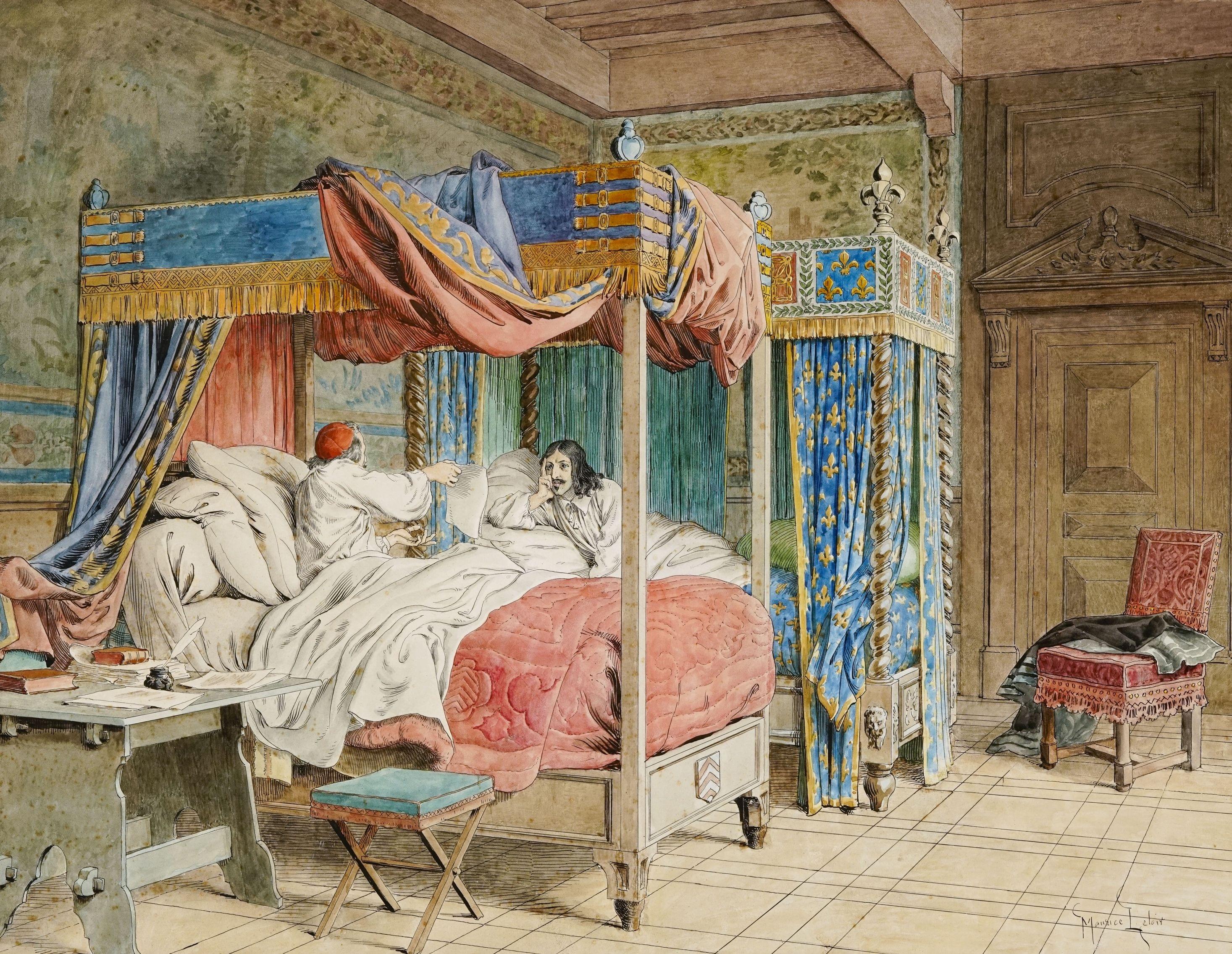 Grand in-8°, maroquin rouge, dos et plats à décor de filets mos....
