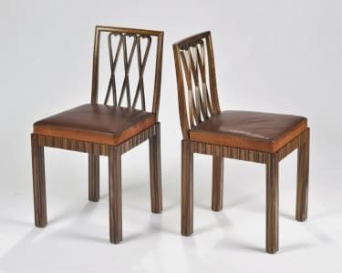 Paire de chaises d'époque Art déco, ébène de macassar et cuir ch...