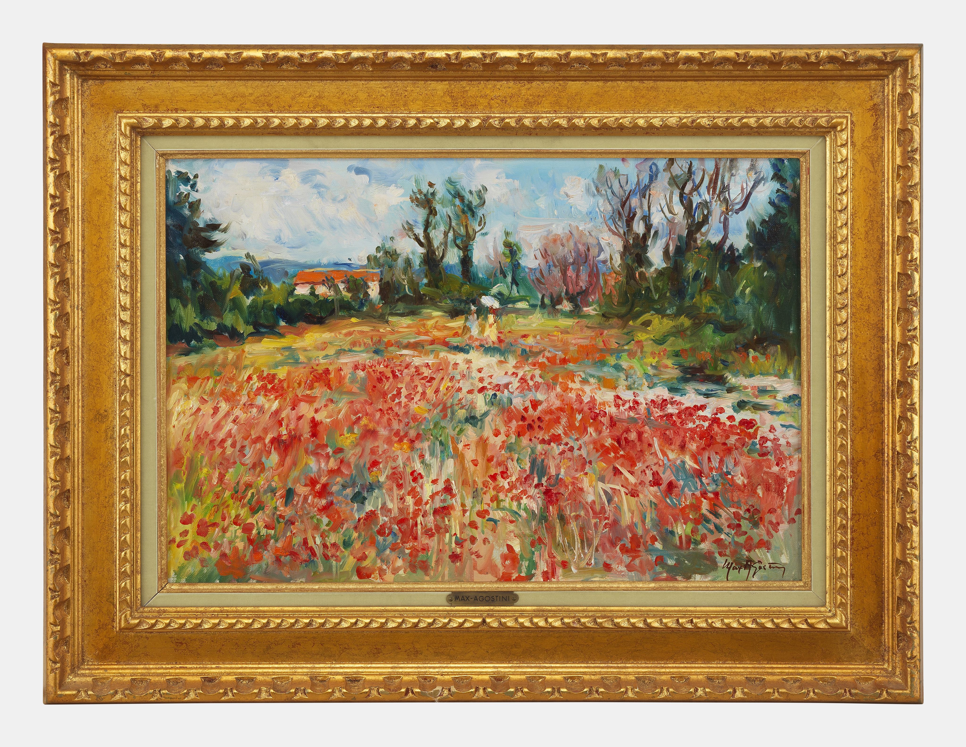 Les coquelicots, huile sur toile, signée, 38x55 cm