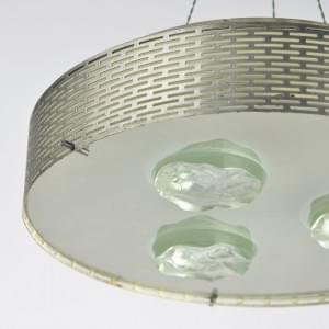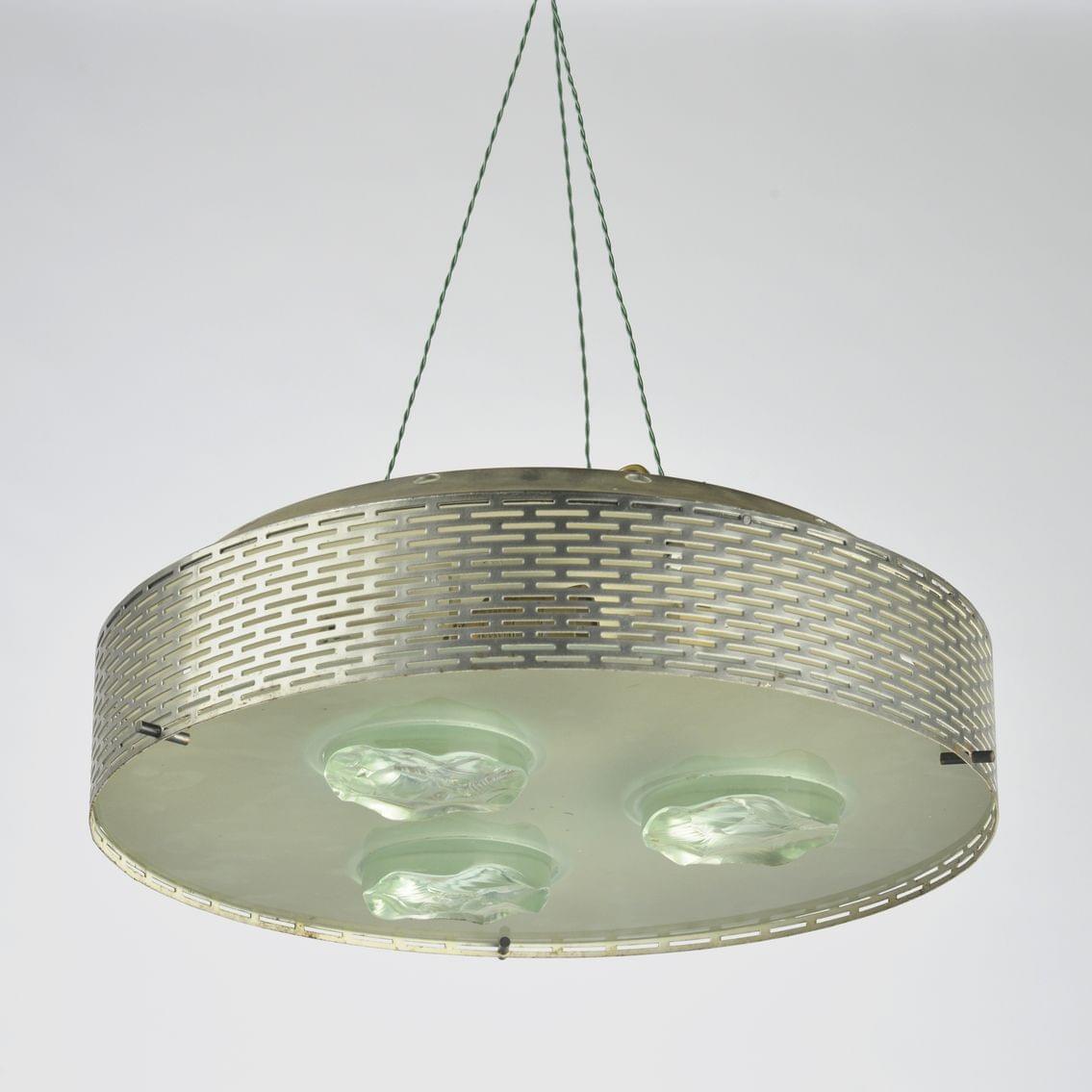 Suite de 3 plafonniers, modèle 2319, laiton, verre à facettes, e...