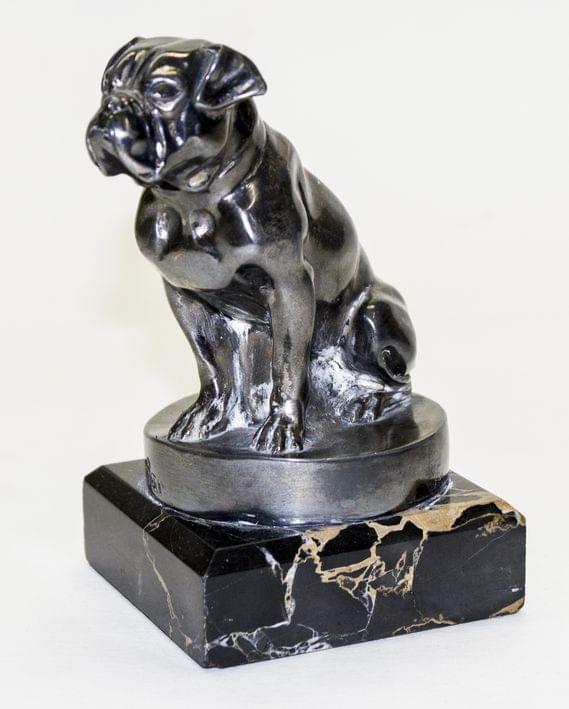 Bouledogue, régule patinée argent oxydé, H 14 cm