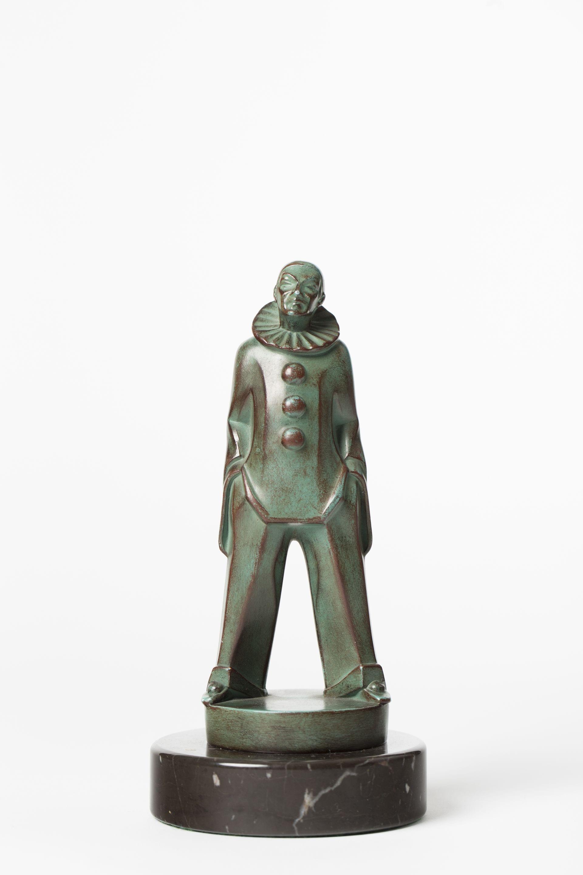 Pierrot, métal à patine verte, H 17,5 cm