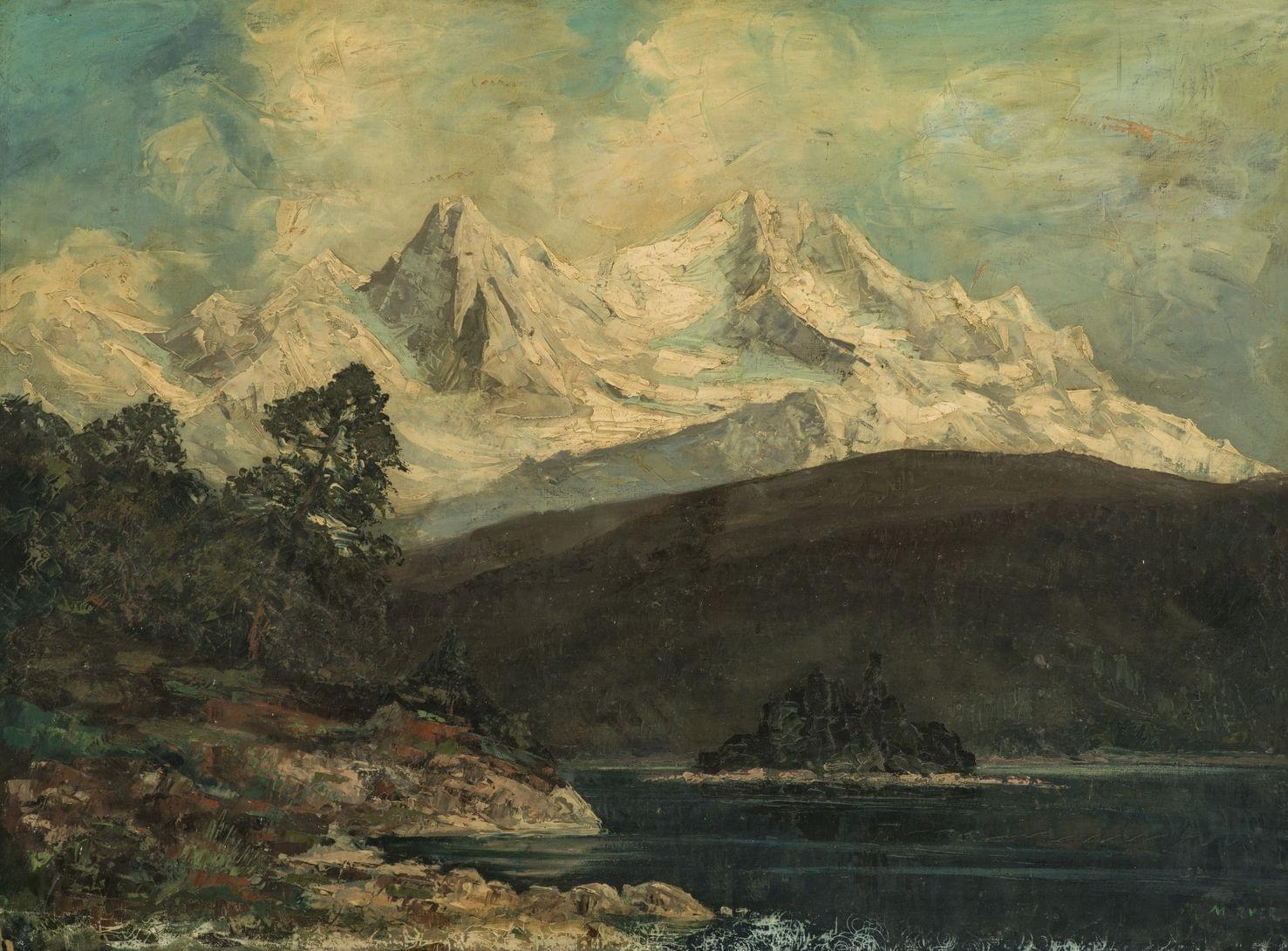 Vue du Königsee, huile sur panneau signée, 64x84 cm