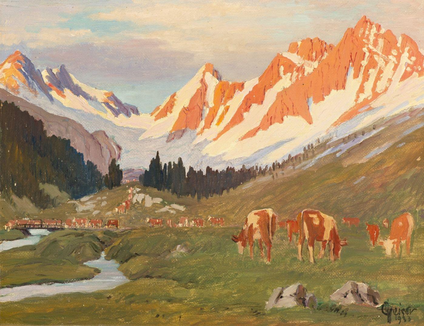 Vue du Königsee, huile sur panneau signée, 64x84 cm