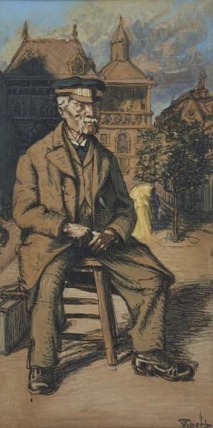 Portrait de vieillard, crayon gras et gouache sur papier, signé...